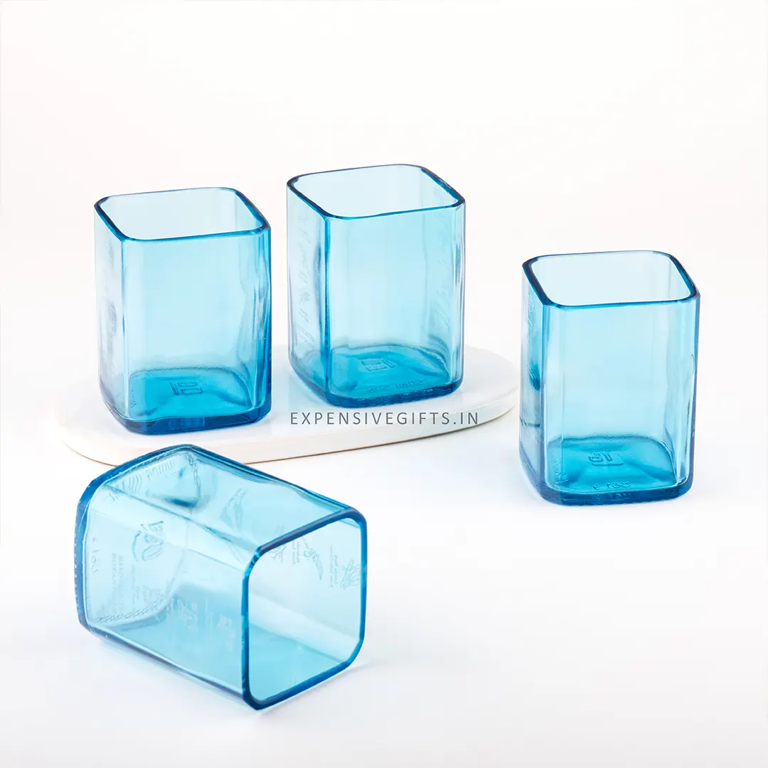 These glasses are ideal for all of your favourite beverages because they are made from Bombay Sapphire bottles. You can use it to serve mixed cocktails at your desk at work or to entertain friends and family. These glasses are very stylish and eco-friendly lifestyle items. These glasses' rims have a lovely bevel and have been meticulously polished and smoothed to eliminate any jagged edges.
